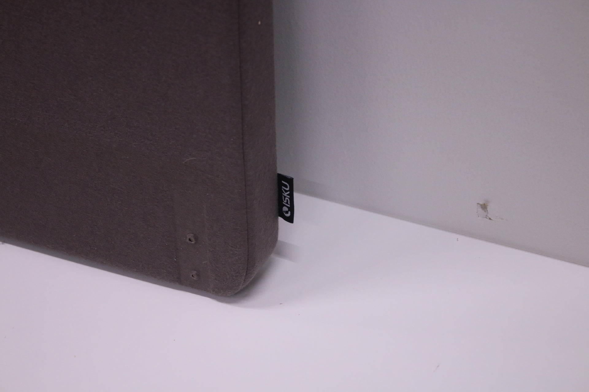 Iskun akustoiva pöytäsermi. Kangas on tummanharmaa. Kiinnike ruuvataan pöydän kanteen. (valkoinen tai harmaa kiinnike)